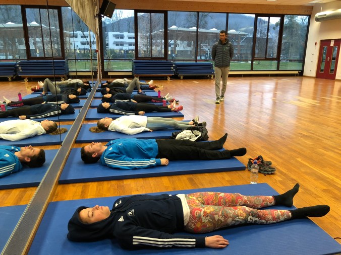 Tout d’abord une séance de statique afin de travailler sur le relâchement dans l’inconfort (point commun entre l’escalade et l’apnée).