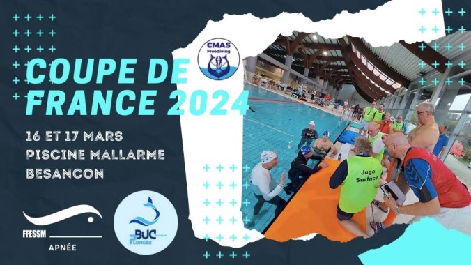 Ce WE du 15/16 Mars se déroulait à Besançon la 3° manche de la coupe de France FFESSM d’apnée.